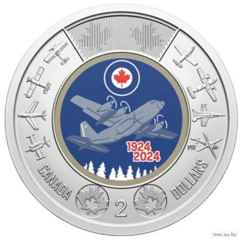 Канада 2 доллара, 2024 100 лет Королевским военно-воздушным силам Канады, Цветное покрытие UNC