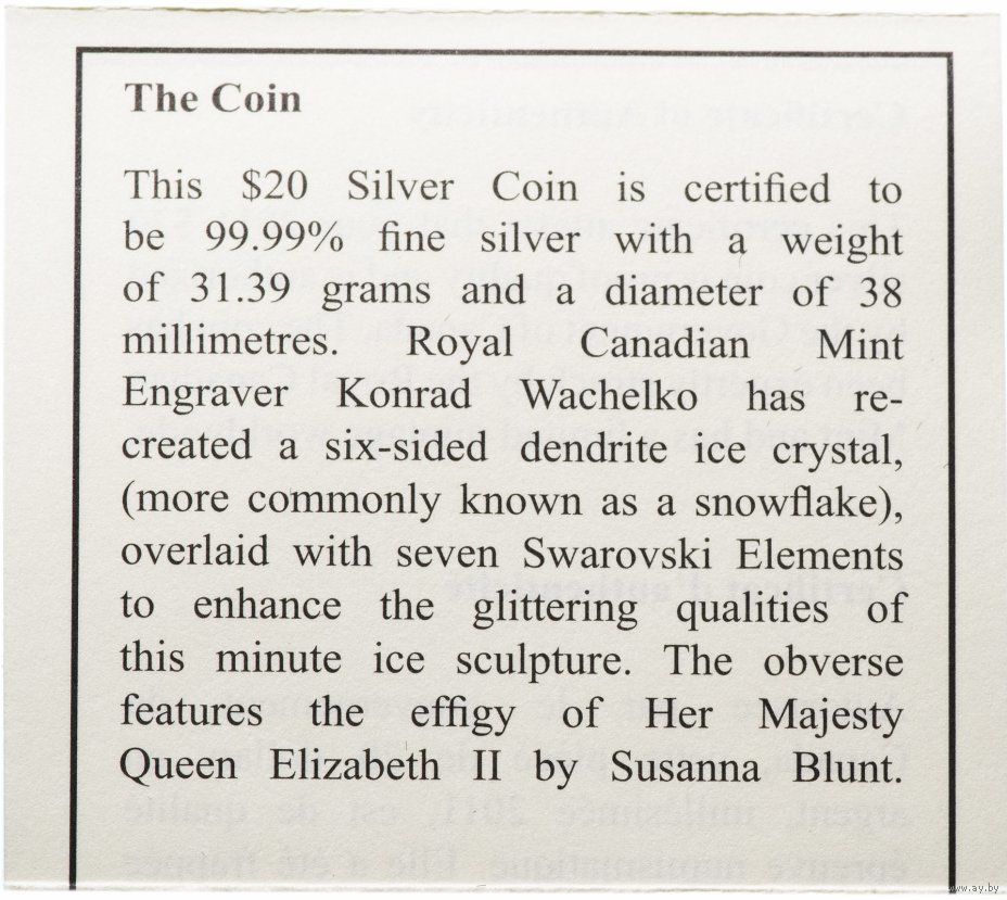Канада 20 долларов 2011г. "Снежинка. Топаз. Новый год". Монета в капсуле; подарочном футляре; номерной сертификат; коробка. СЕРЕБРО 31,39гр.(1 oz).