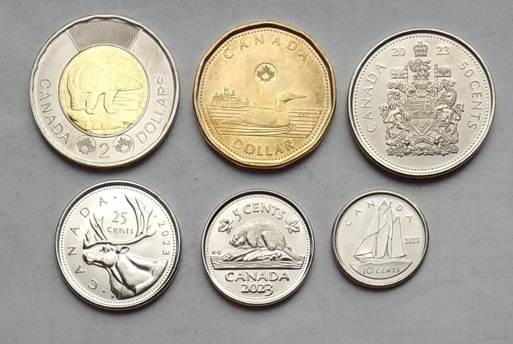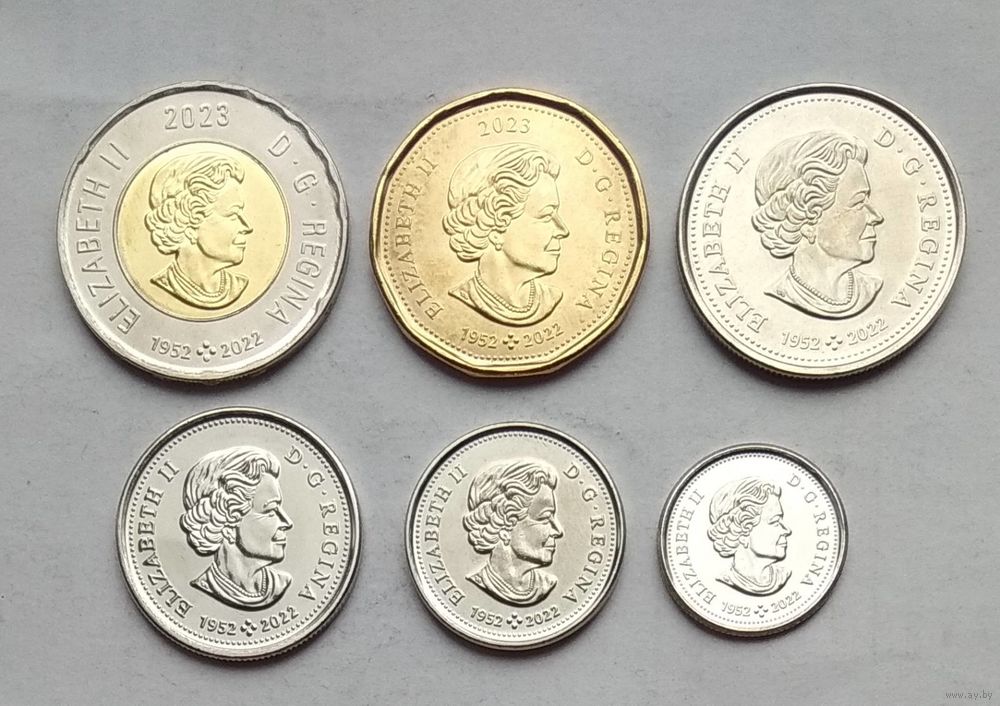 Канада 5, 10, 25, 50 центов, 1, 2 доллара 2023 г. Памяти Елизаветы II 1952-2022. Комплект 6 монет