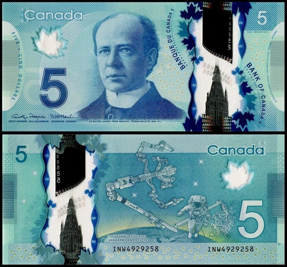 Канада 5 долларов образца 2013 года UNC p106f серия INW