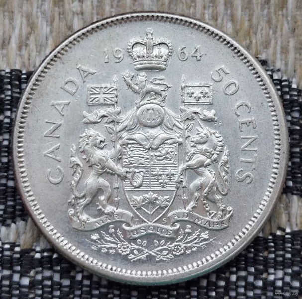 Канада 50 центов (1/2 доллар) 1964 год, AU. Королева Елизавета II. Серебро. Сторгуй за свою цену, предложи обмен!