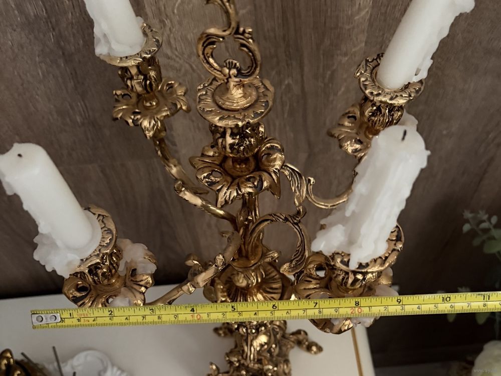 Канделябр бронзовый,2 шт, страна производства Иран, покупка в 1999 году в Nader carpet .Размер 55 см на 25 см,тяжелые. Состояние отличное бережное отношение.