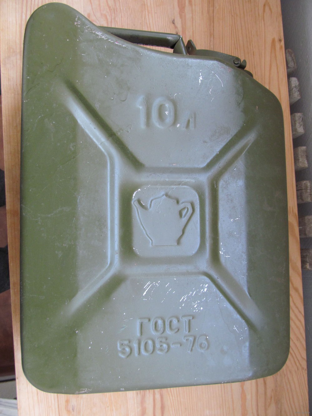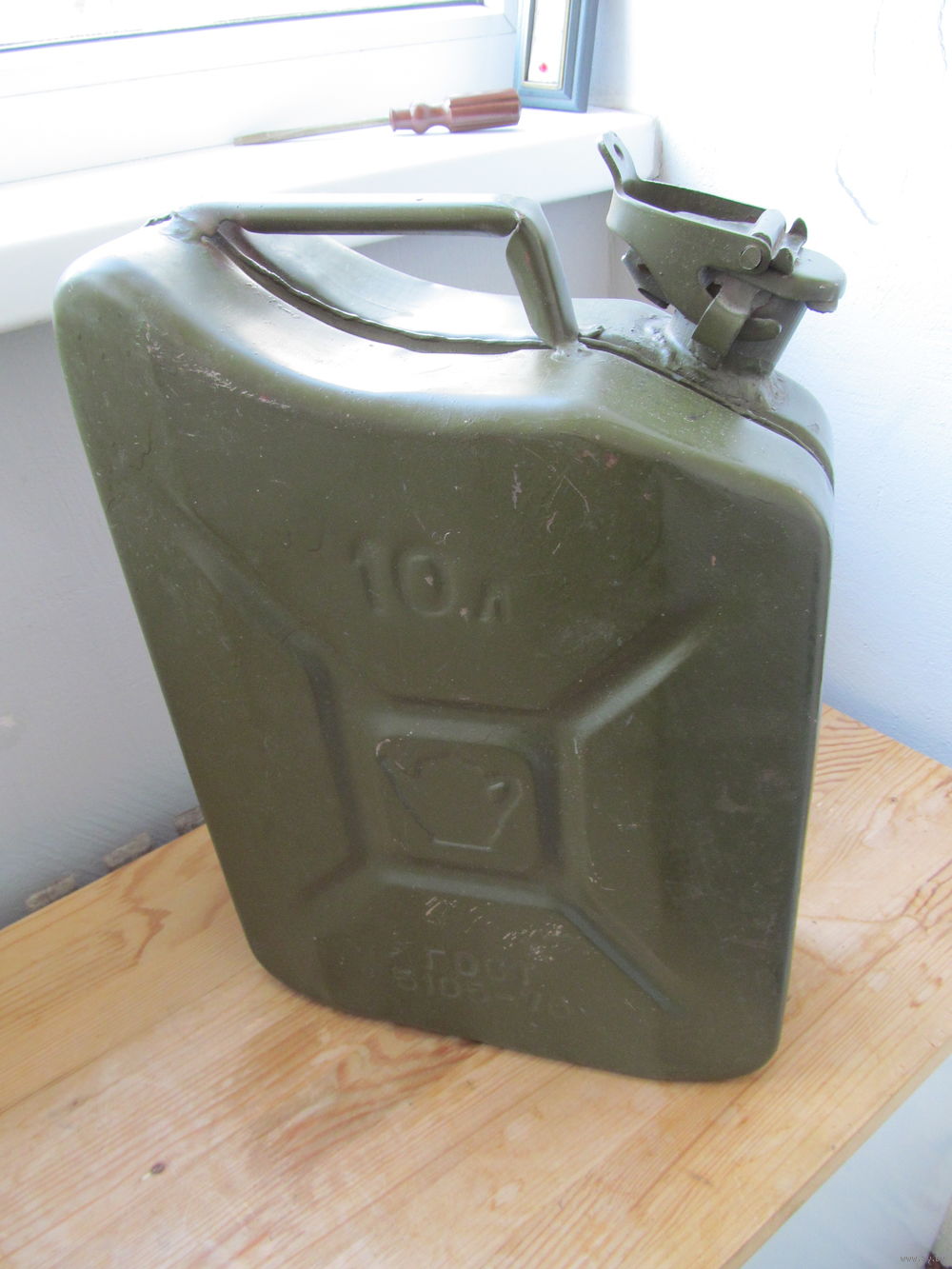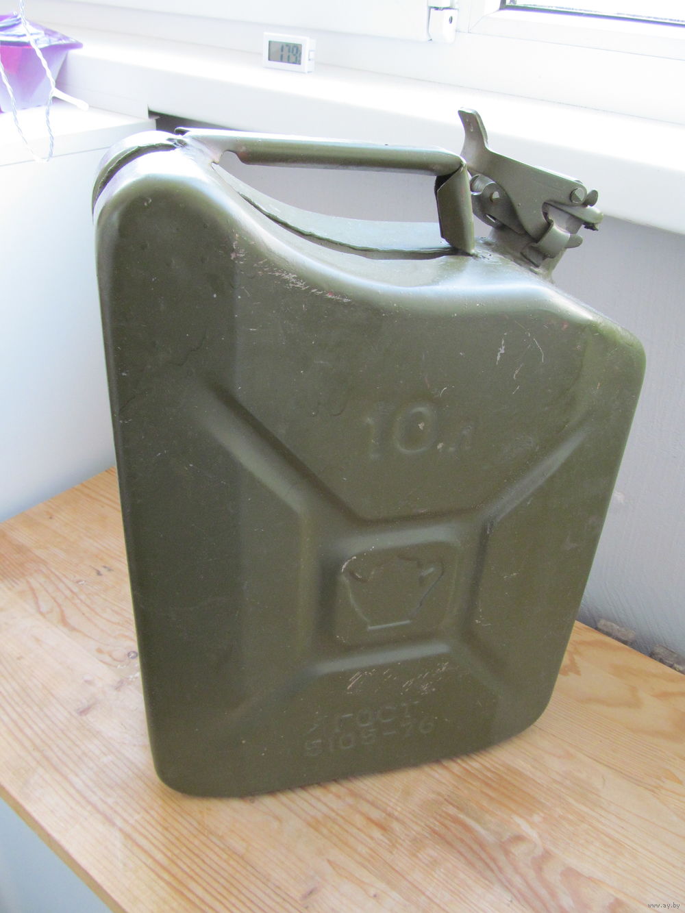 Канистра КС-10 производства СССР, нетонкий металл, вес 2,6кг, не гнется, прочная и надежная. В эксплуатации не была. незначительные потертости корпуса от времени.