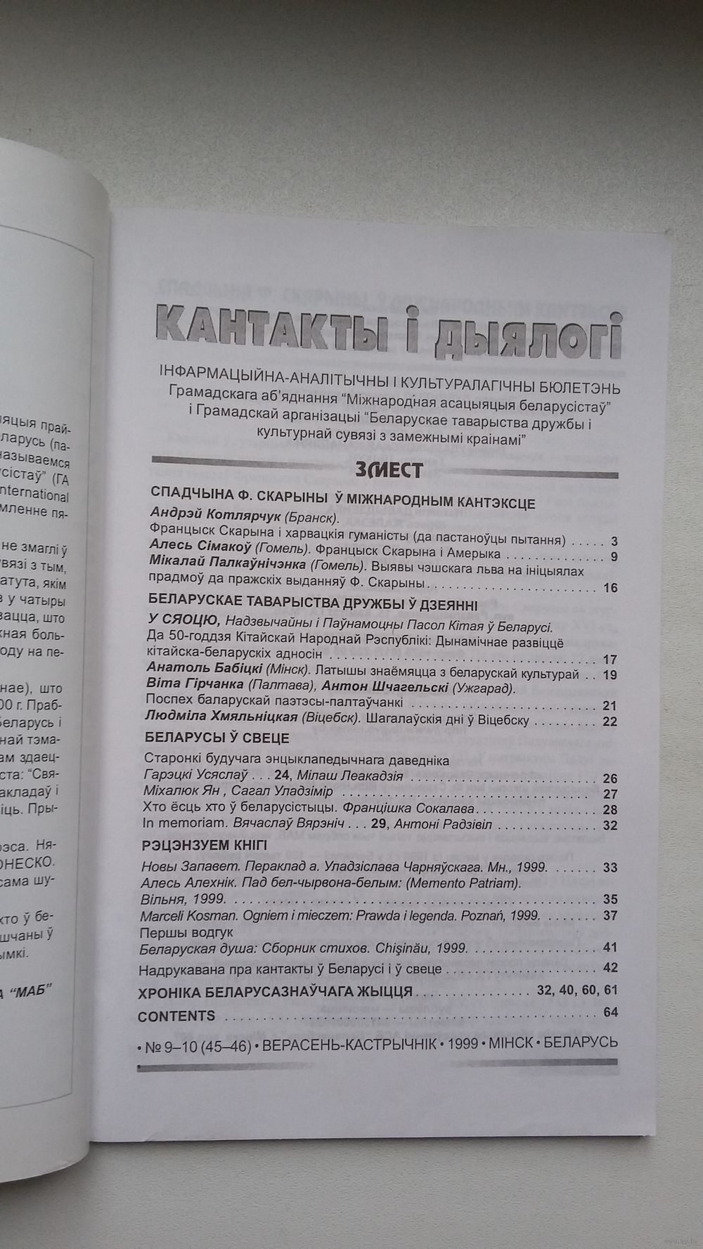 Кантакты і дыялогі: Скарына - кнігадрукаванне - асветніцтва