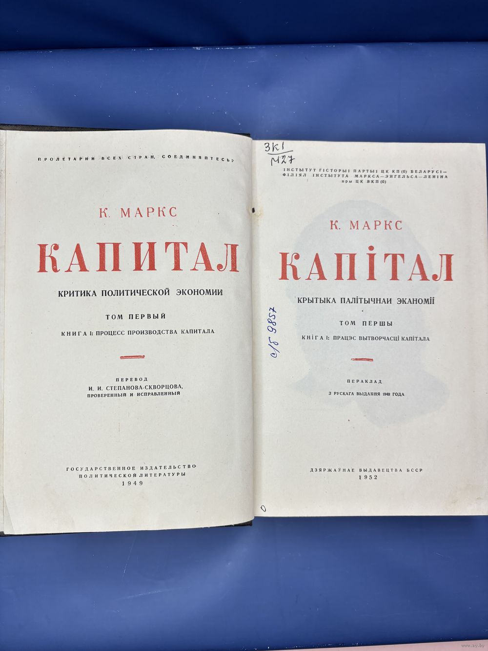 Капитал Карла Маркса 1952 на белорусском языке том первый