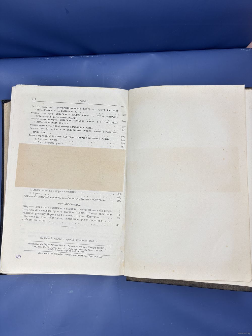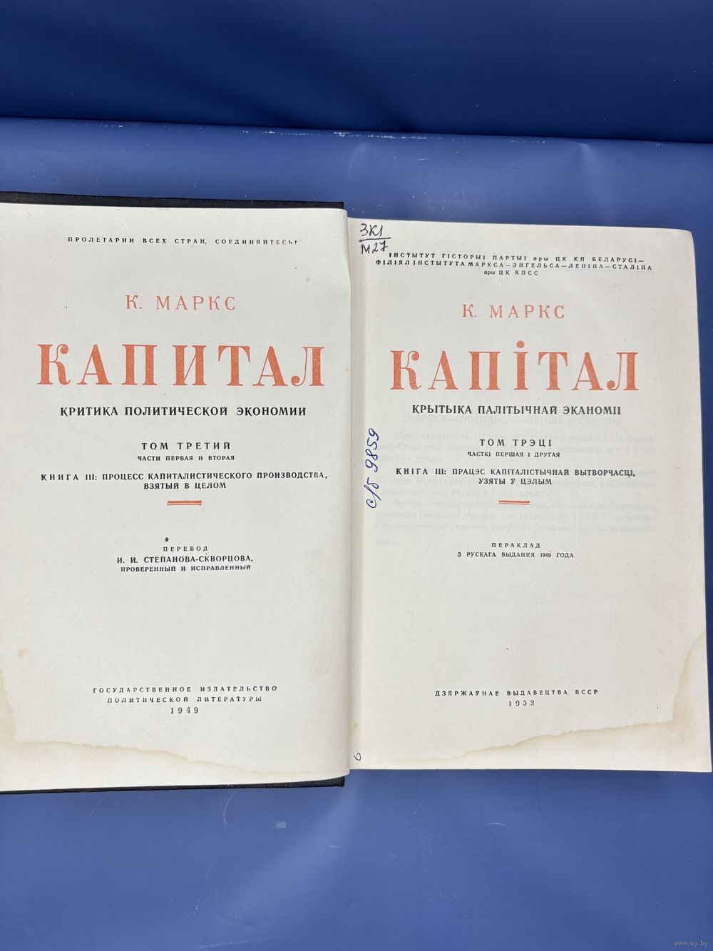 Капитал Карла Маркса 1953 на белорусском языке том третий