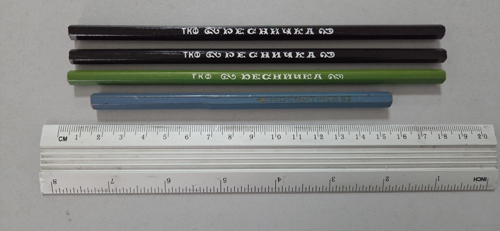 Карандаши косметические из СССР "Ресничка" и "Косметика" новые. Чёрный - 2 шт, зелёный - 1 шт., синий - 1 шт.