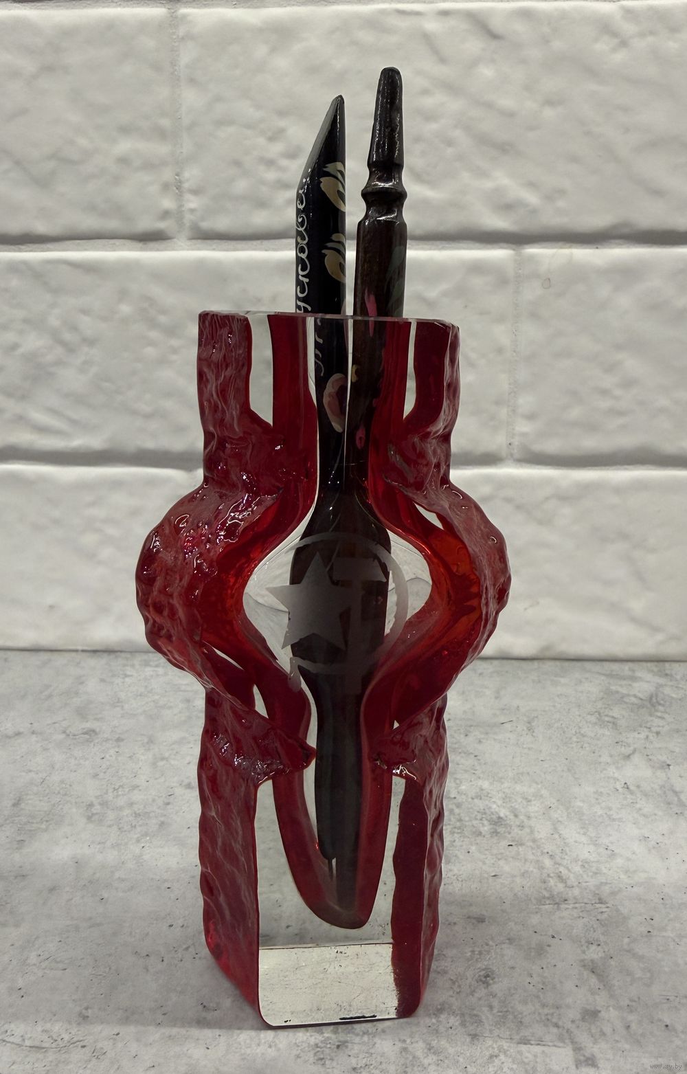 Карандашница. АГИТАЦИЯ. Серп и Молот со Звездой. Красное стекло. РЕДКОСТЬ!! Распродажа коллекции!!!