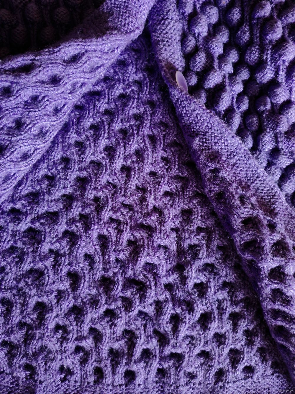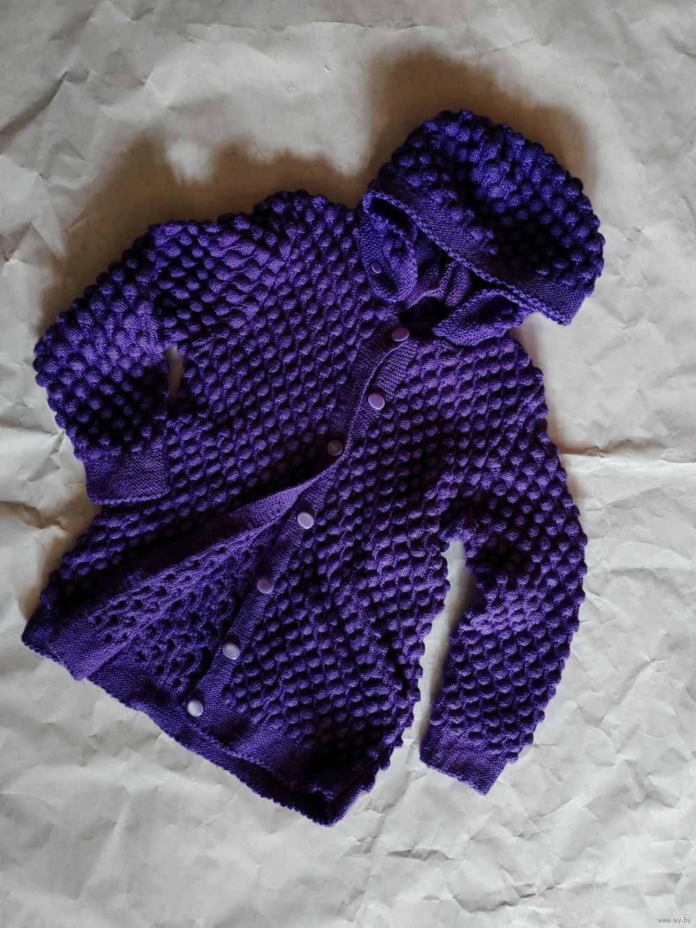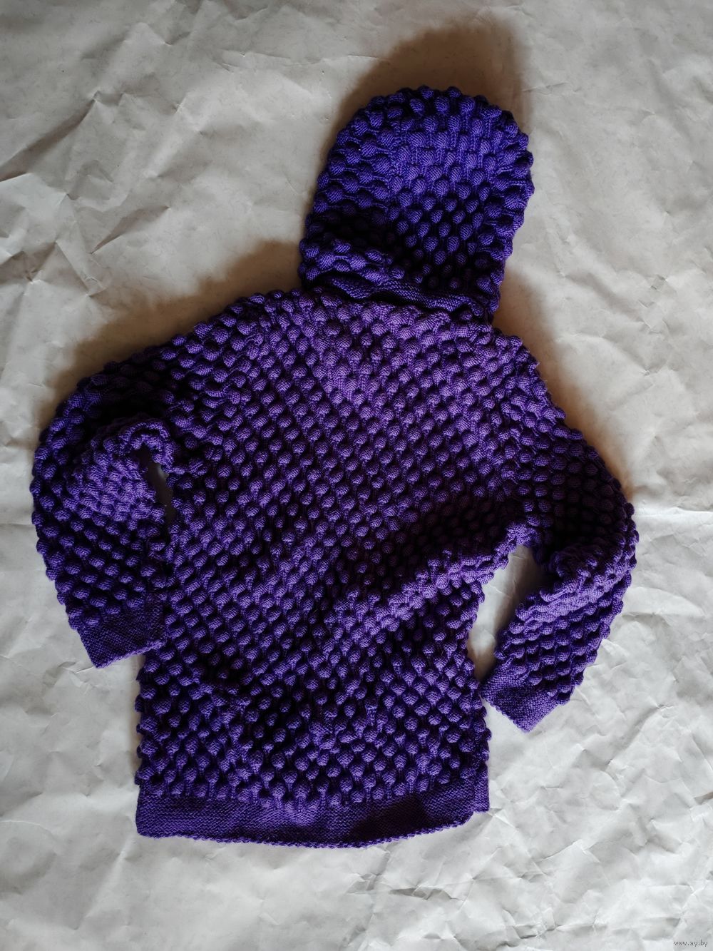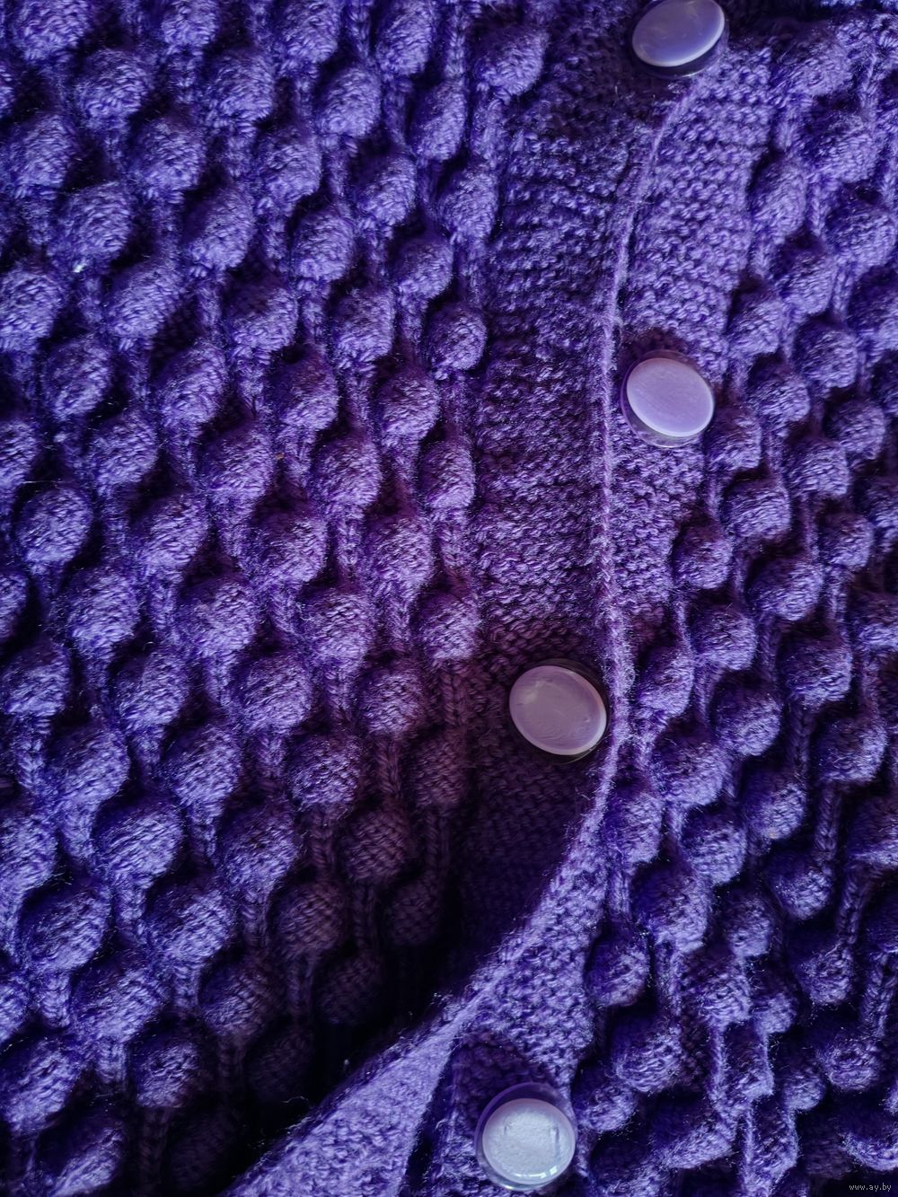Шерстяной кардиган в сиреневом цвете выполнен обьемной вязкой. Застегивается на пуговицы. Капюшон отстегивается. Очень тёплый. новое состояние. Размеры: ПОГ 46 см, длина 65 см. Оттенок капюшона слегка отличается