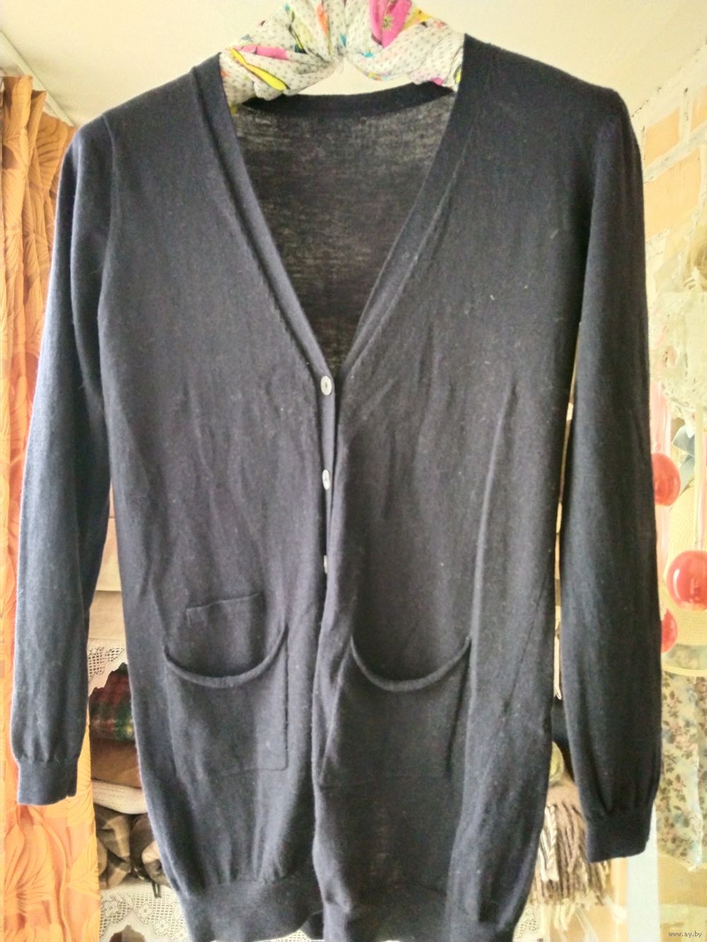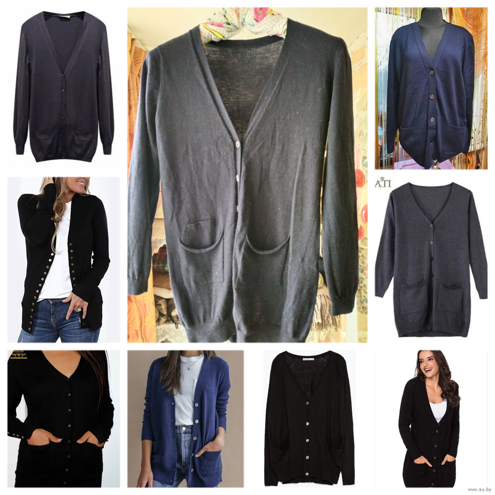 Кофта с карманами тёмно-синего, почти черного цвета.