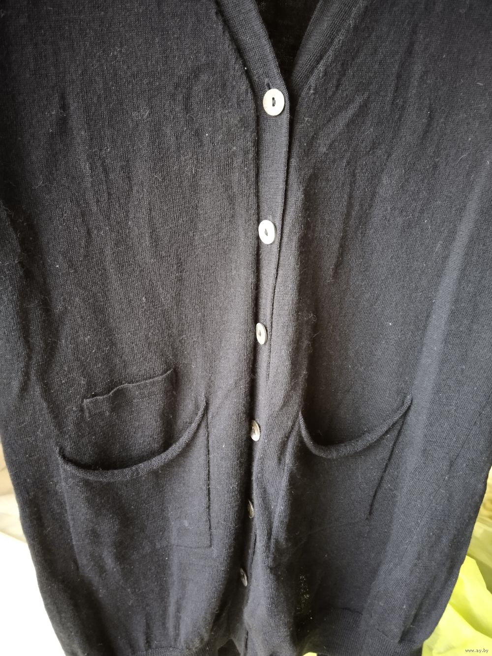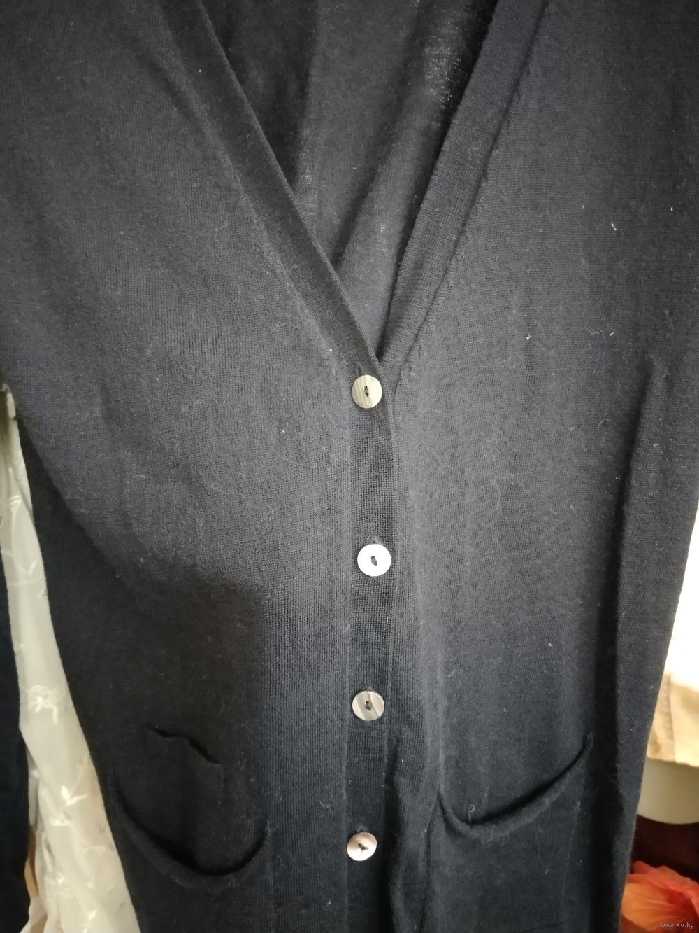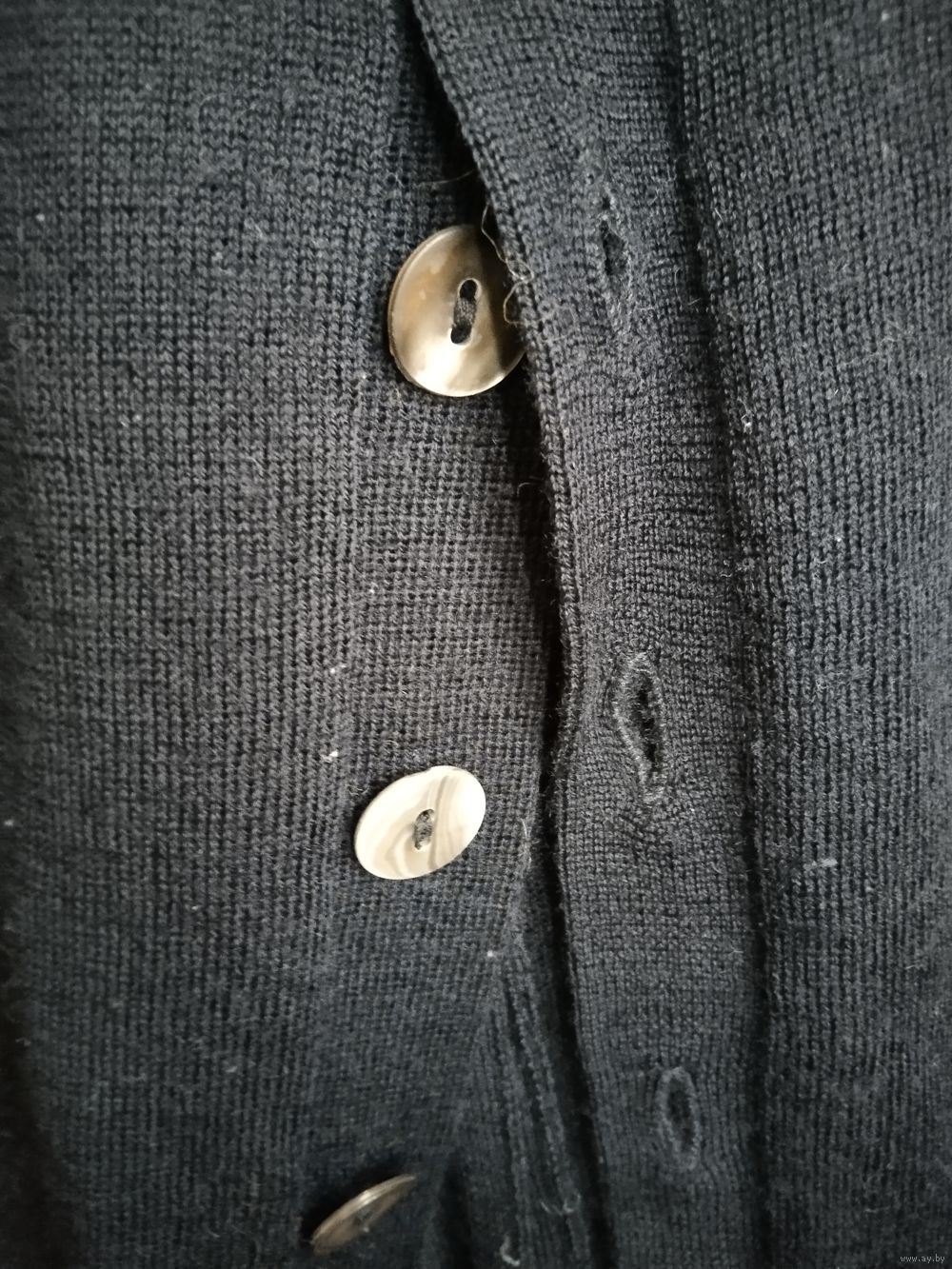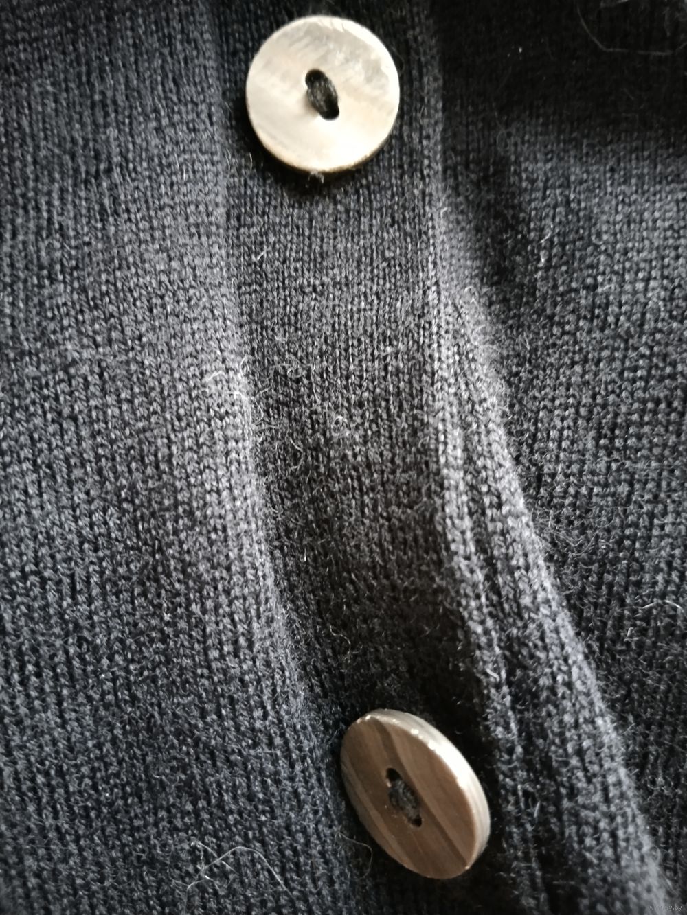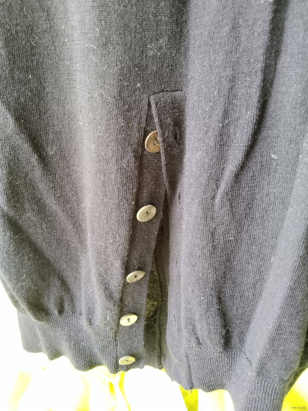 Интересный дизайн - сзади шлица на пуговицах. Все пуговицы натуральная ракушка с перламутром. Всего 13 пуговиц на кардигане.