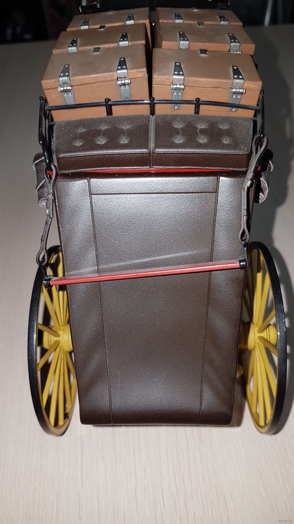 Очень крутая проработка и детализация! Кожа, рабочие тормоза и т.д и т.п. Без поломок и отсутствующих деталей. Упаковка к сожалению выброшена лет 25 назад.