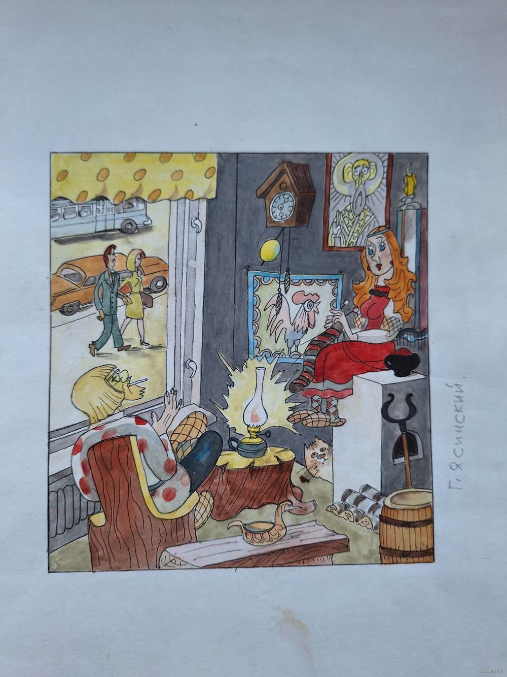 Здравствуйте, предлагаю к продаже оригинал карикатуры художника Геннадия Ивановича Ясинского (1932-2005г.), для журнала "Крокодил" №15, 1985 года. Размер листа: 42 х 56 см., размер изображения: 25х23 см.