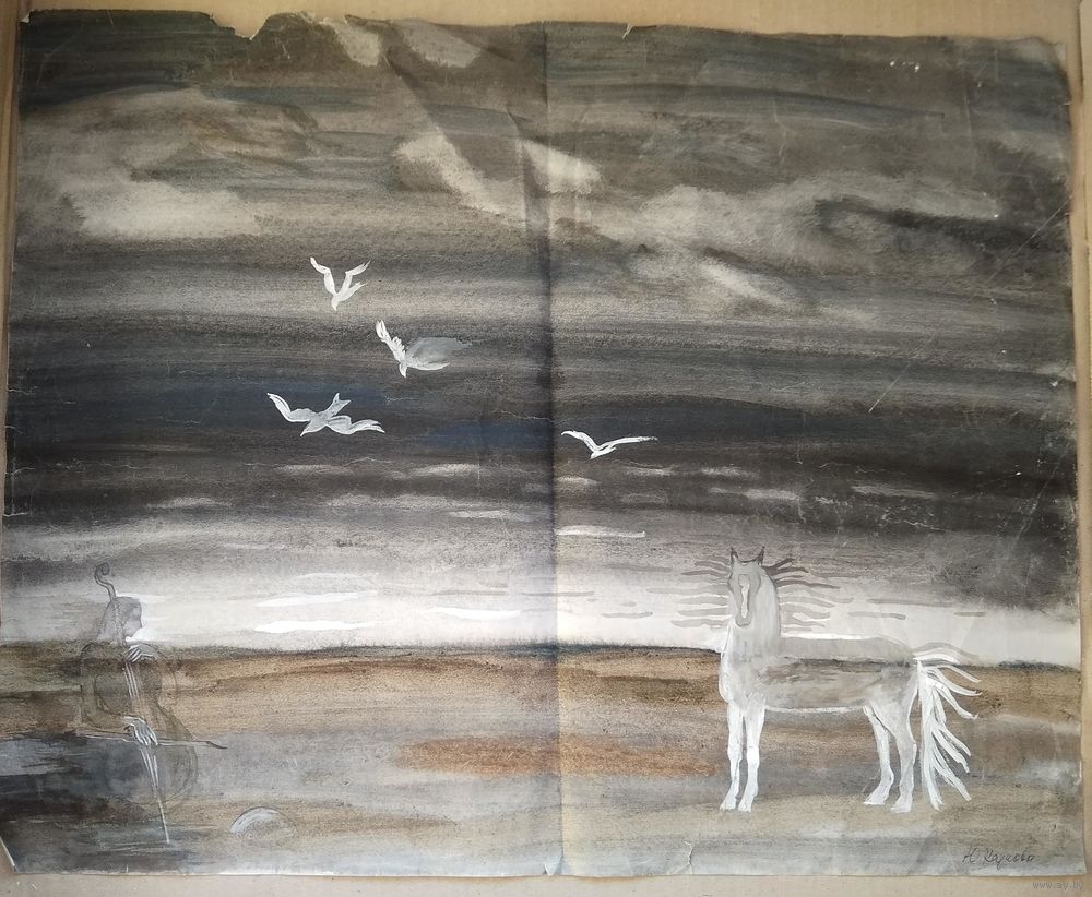 Кариова Юлия. Пейзаж с чайками. Гуашь. 50х60 см.