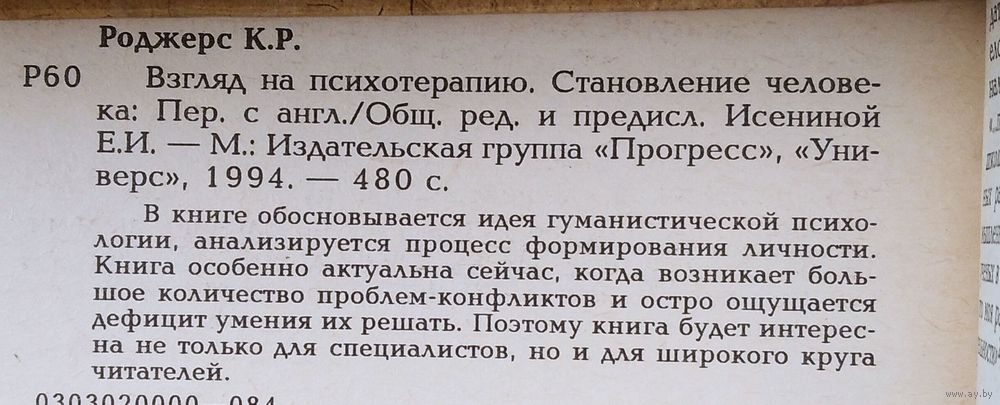 Карл Роджерс. Взгляд на психотерапию. Становление человека. М. Прогресс. Универс, 1994 г 480 с. Мягкая обложка.