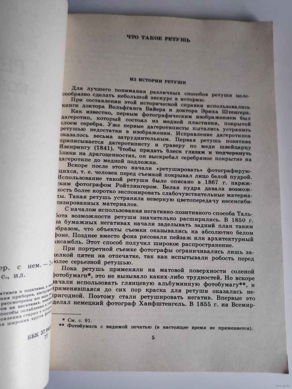 В книге рассказано о ретуши черно-белых негативов и позитивов, а также цветных изображений и диапозитивов. Даны описания приборов, инструментов и материалов, необходимых для ретуши. Подробно рассмотрены все виды ретуши, приемы работы и способы исправления дефектов на негативах, позитивах и диапозитивах.