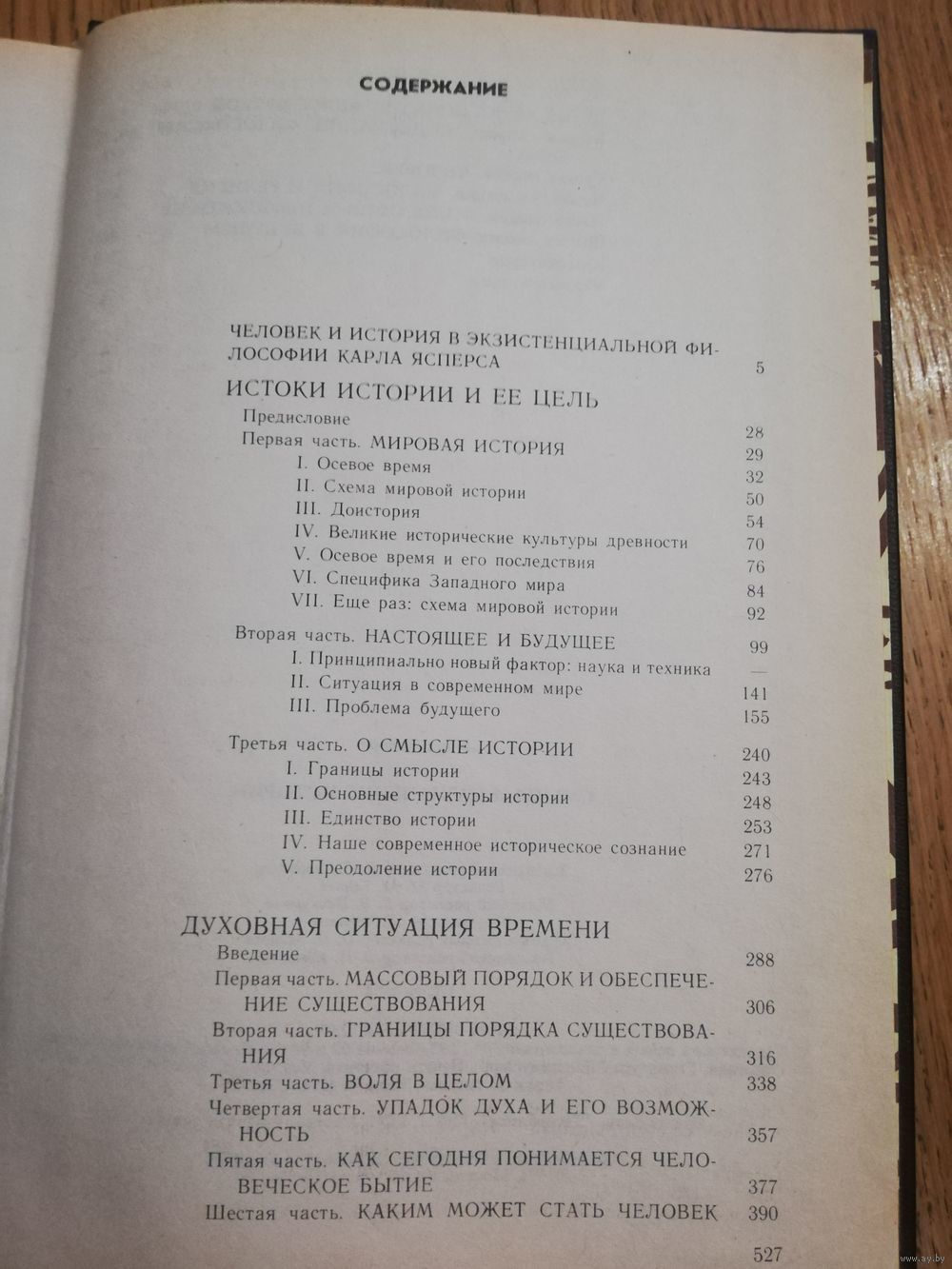 Большой формат. Тираж 50000 экз. 528 стр. В сборник работ одного из самых ярких представителей экзистенциализма, К. Ясперса (1883—1969), включены три книги, объединенные темой судеб духовности в кризисную эпоху, противостояния человека и безличной власти, смысла, происхождения и цели человеческой истории Это — «Истоки истории и ее цель», «Философская вера» и «Духовная ситуация эпохи» Рассчитана на читателей, интересующихся философией и историей культуры.