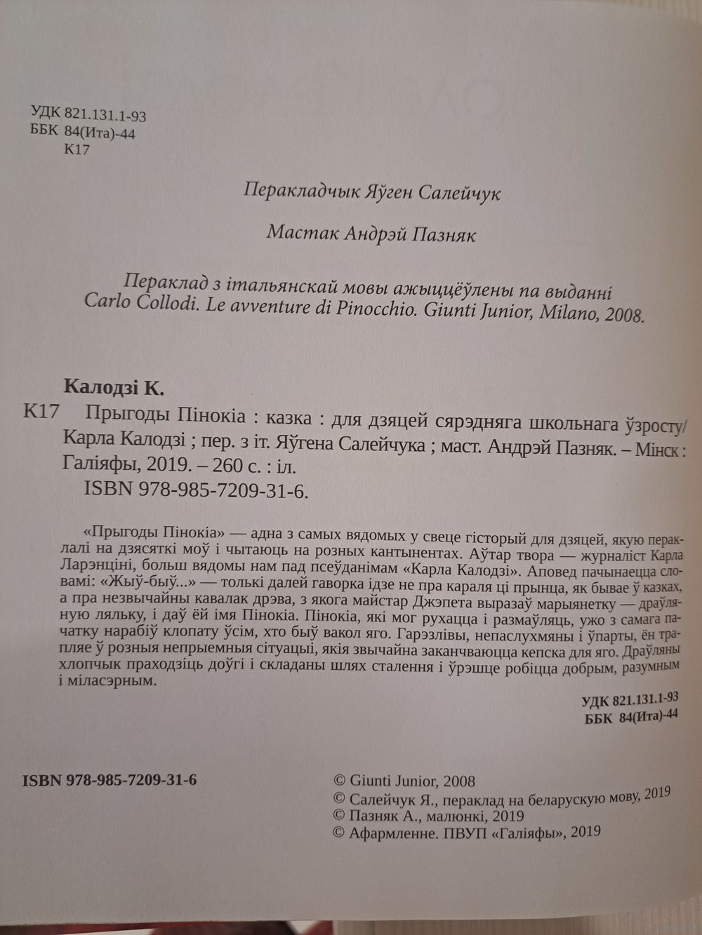 Карла Калодзі прыгоды Пінокіа. Пераклад з італьянскай