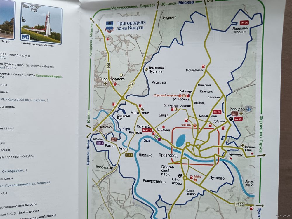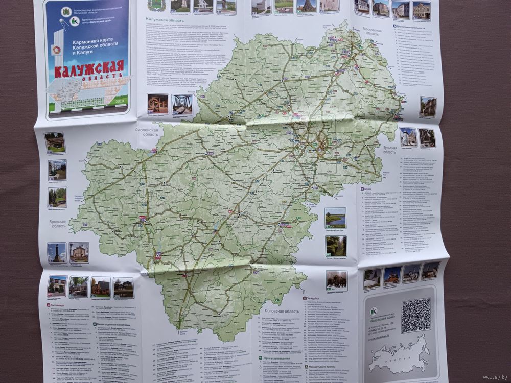 Карманная туристская схема Калужской области и Калуги, раскладная (3384)