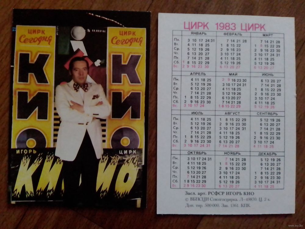 Карманный календарик.1983 год.Цирк