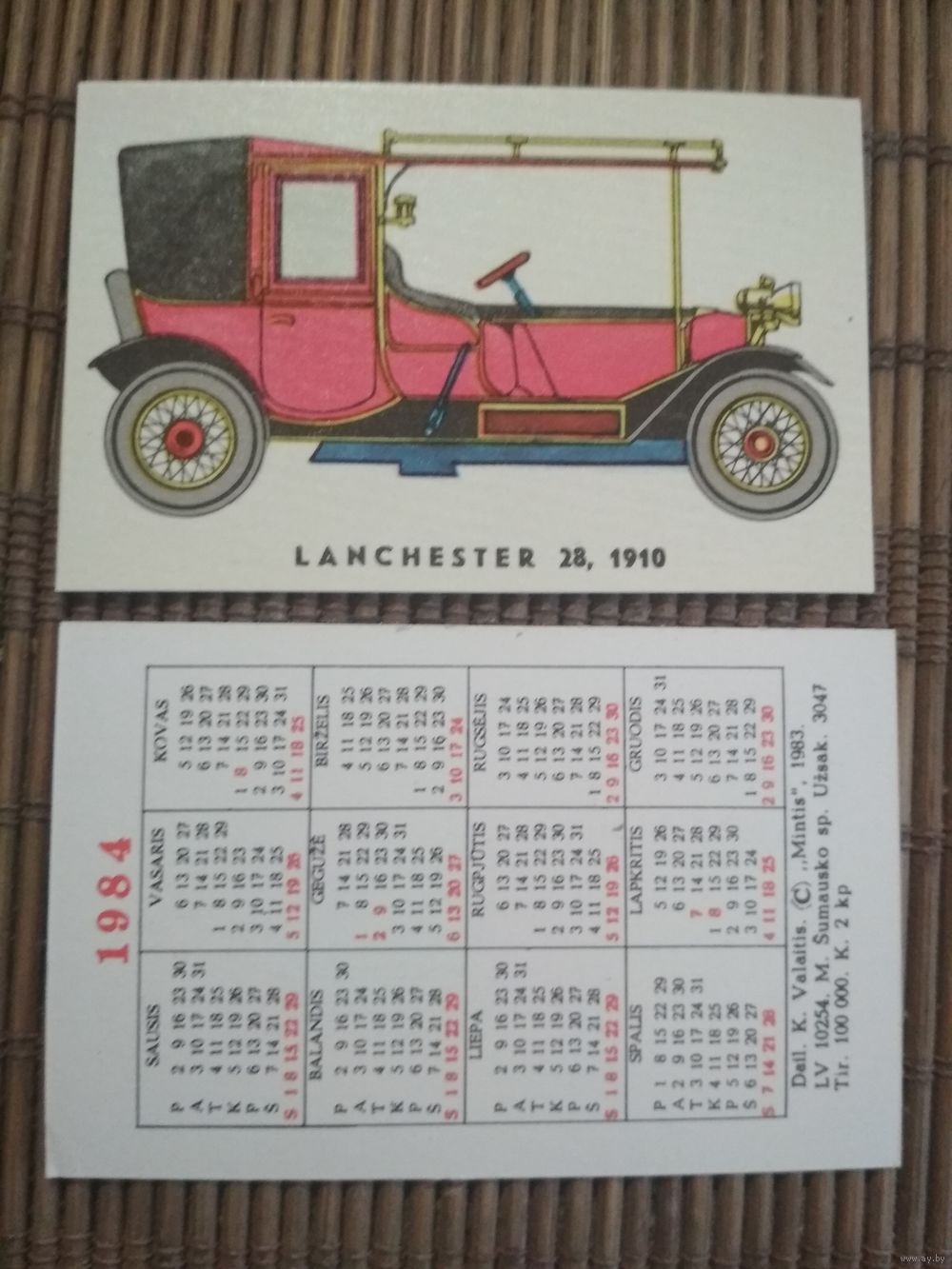 Карманный календарик. 1984 год. Автомобиль. Литва