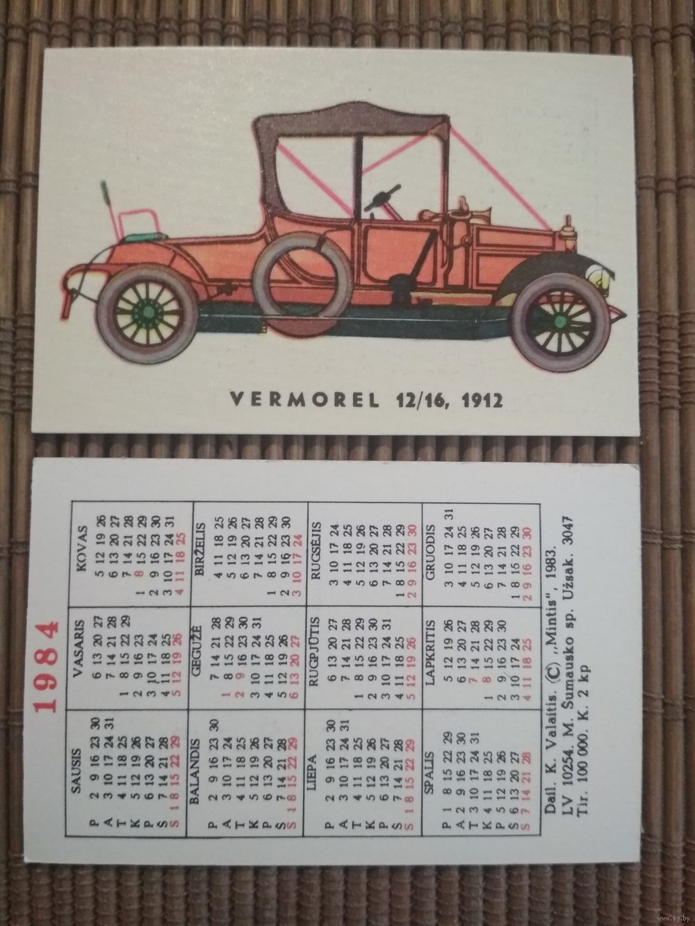Карманный календарик.1984 год. Автомобиль. Литва