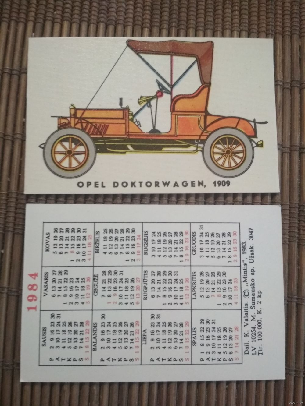 Карманный календарик. 1984 год. Автомобиль. Литва