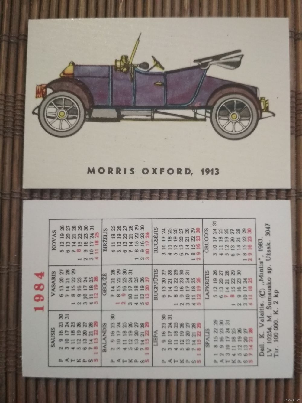 Карманный календарик. 1984 год. Автомобиль. Литва