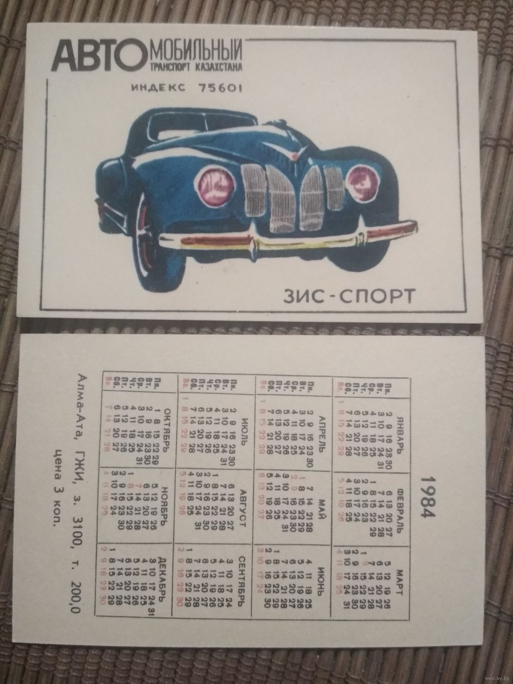 Карманный календарик. 1984 год. Автомобильный транспорт Казахстана. ЗИС-спорт