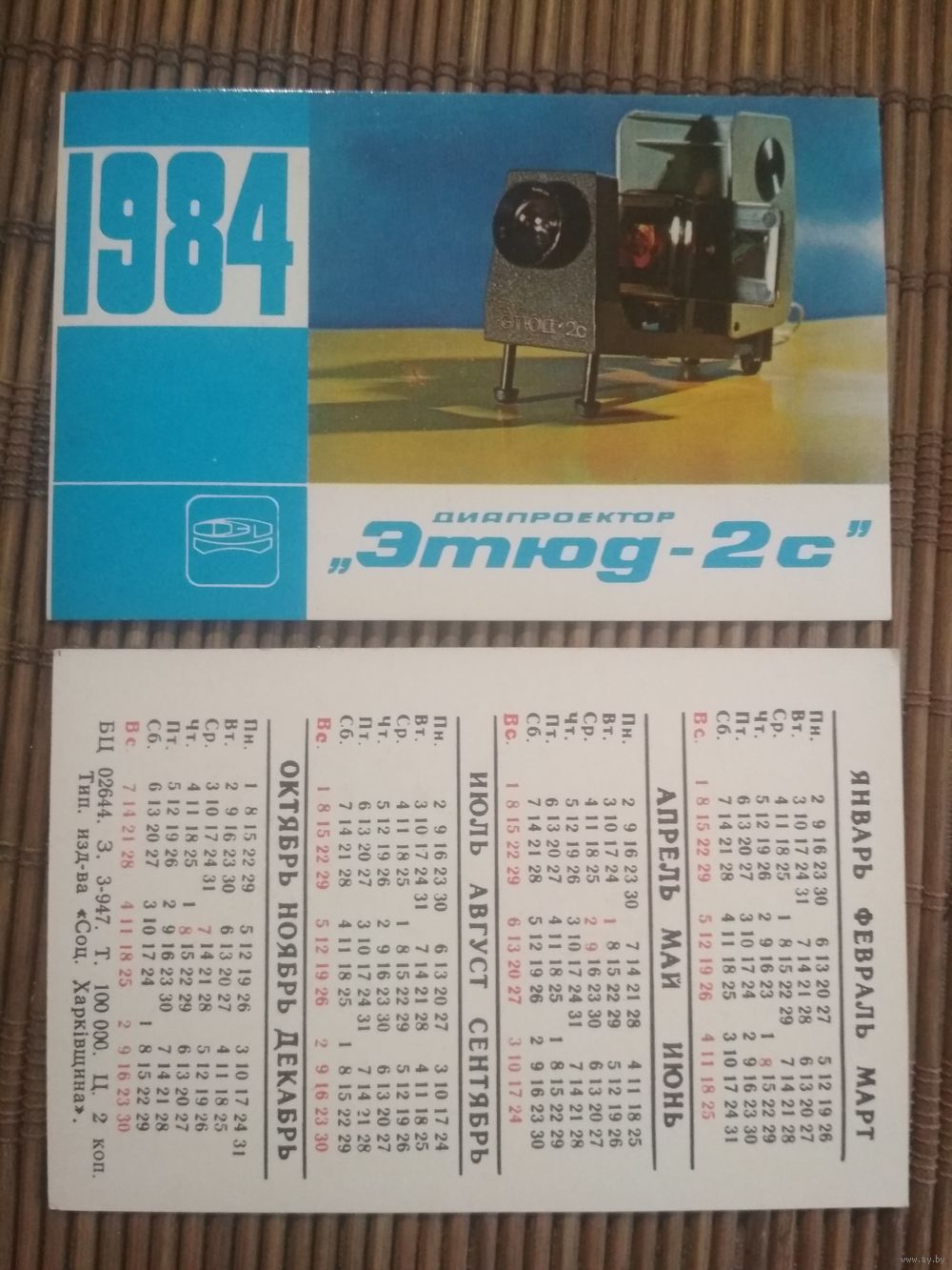 Карманный календарик.1984 год. Фотоаппарат Этюд-2С