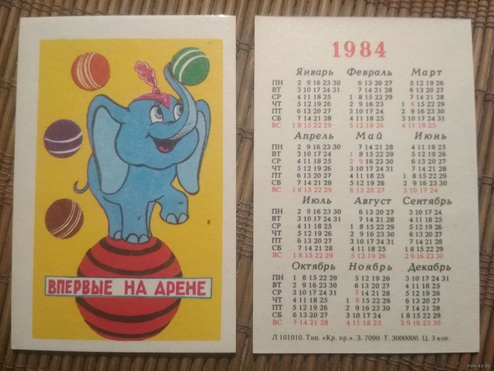 Карманный календарик.1984 год. Мультфильм Впервые на арене