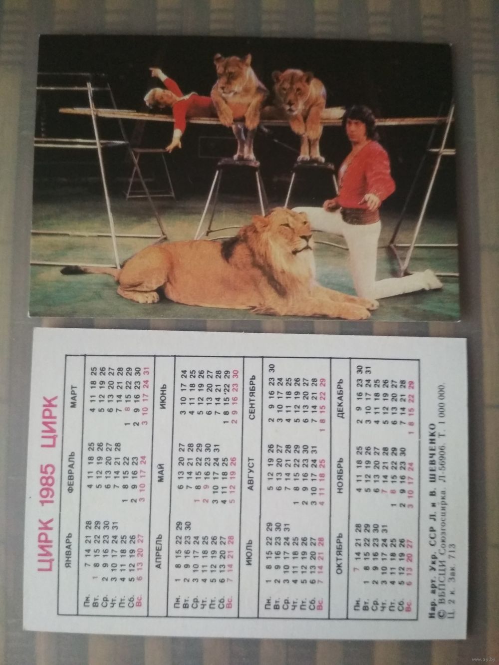 Карманный календарик.1985 год. Цирк. Владимир и Людмила Шевченко