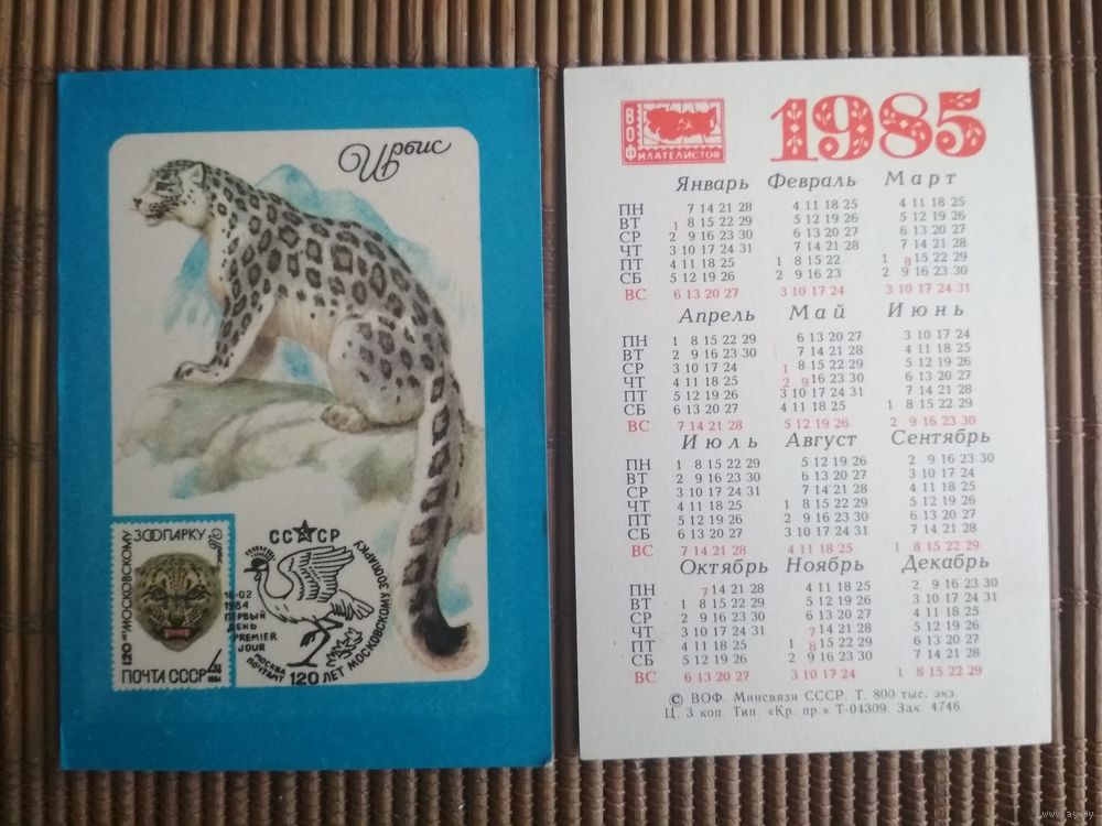 Карманный календарик.1985 год. Филателия. Ирбис