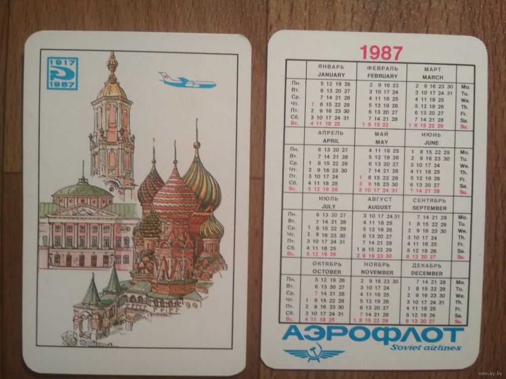 Карманный календарик. Аэрофлот. 1987 год
