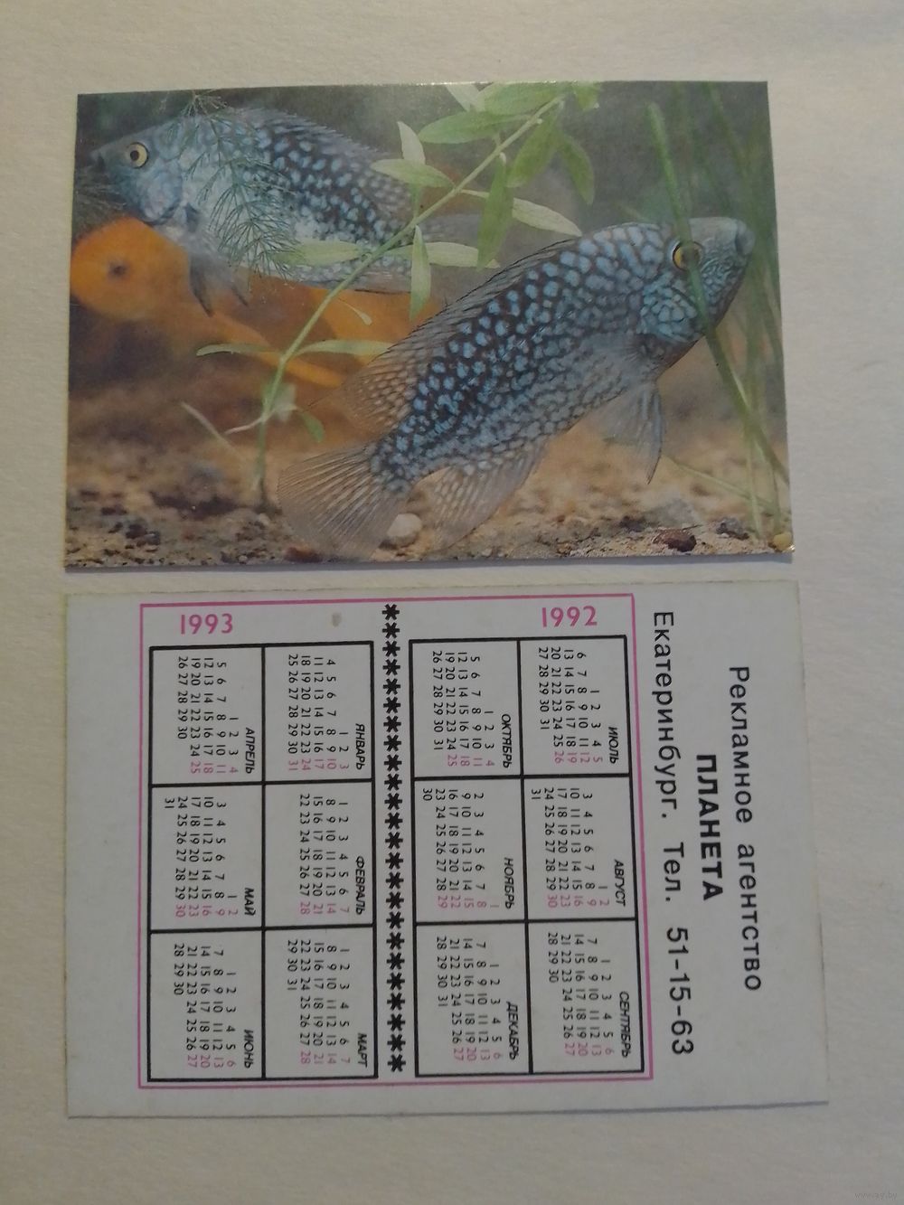 Карманный календарик. Аквариумные рыбы.1992 год