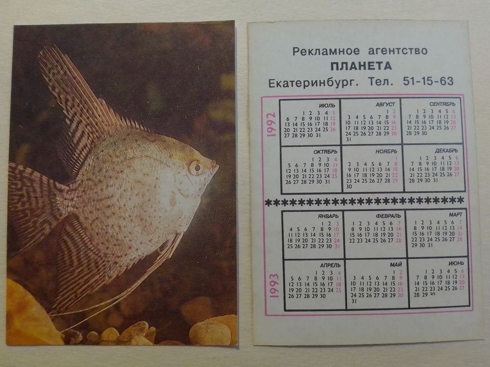 Карманный календарик. Аквариумные рыбы.1992 год