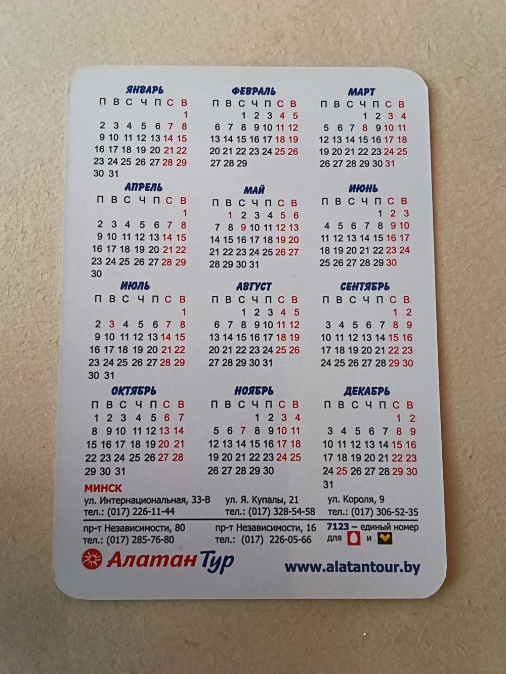 Карманный календарик. Алатан тур. 2012 год
