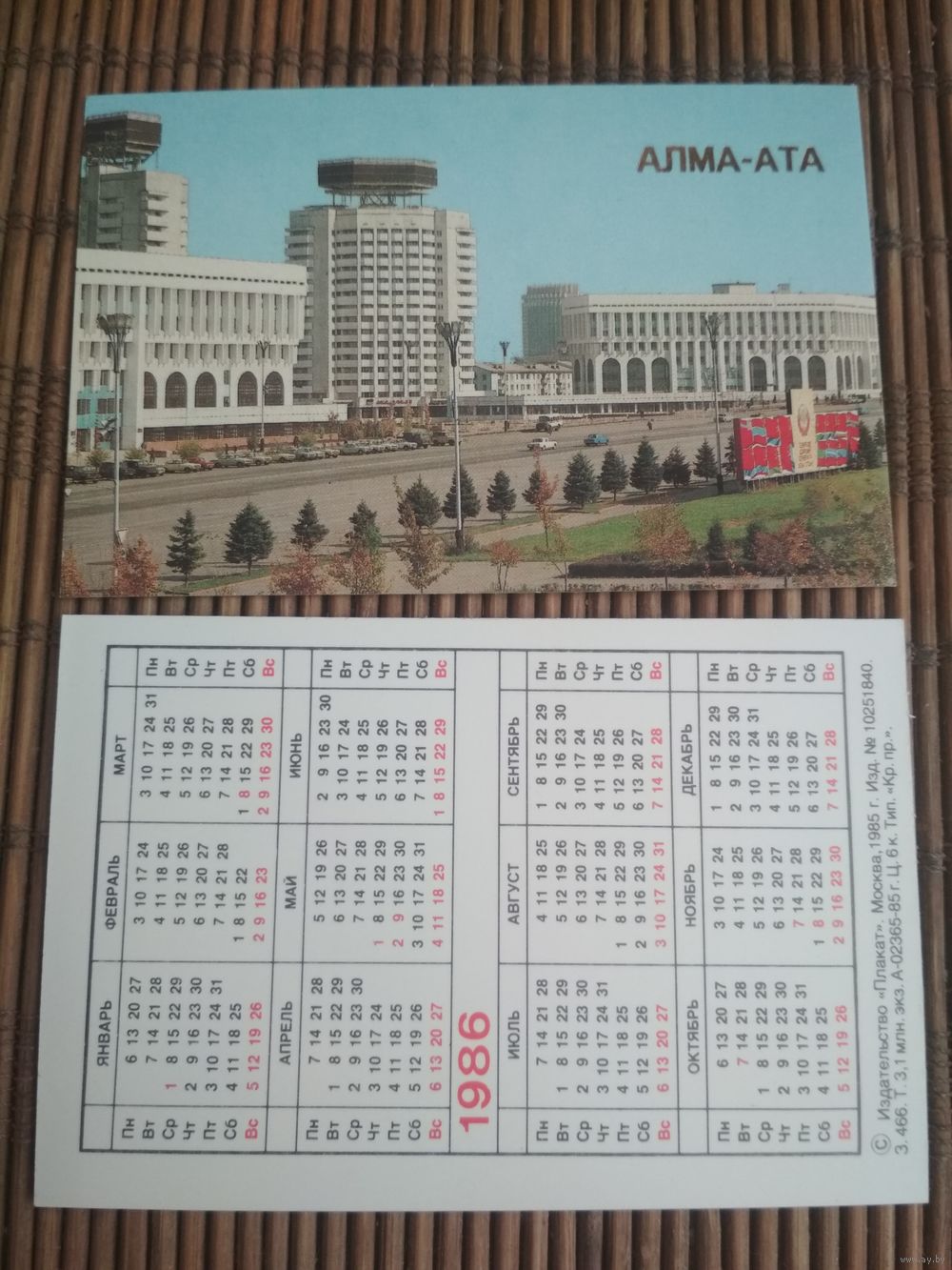 Карманный календарик. Алма-Ата .1986 год