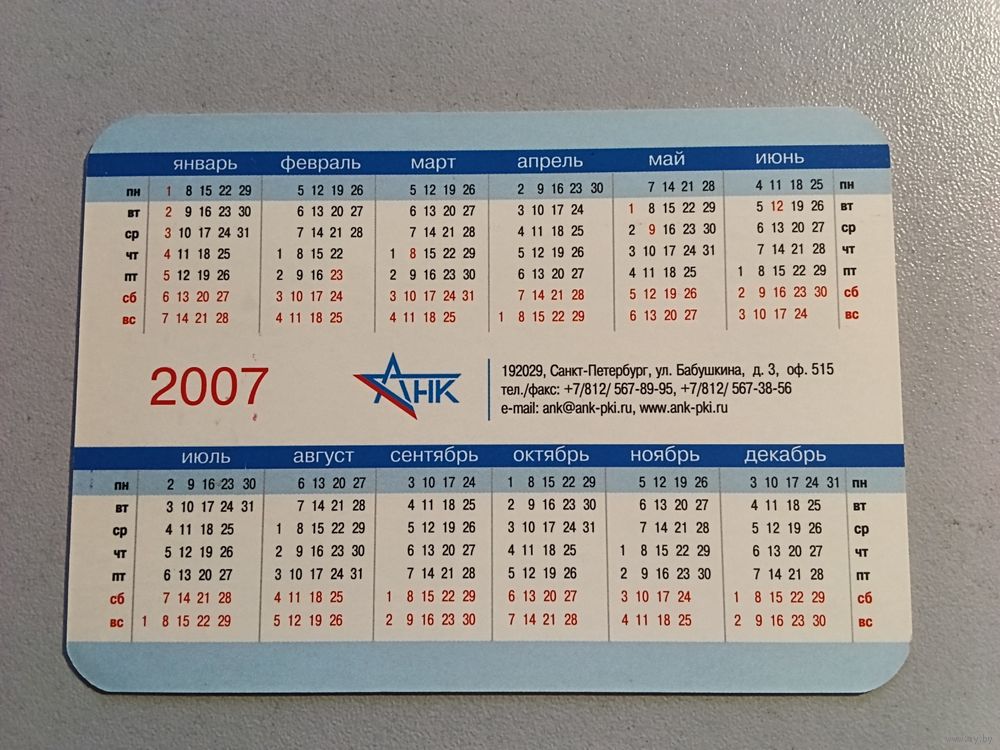 Карманный календарик. АНК. Питер. 2007 год
