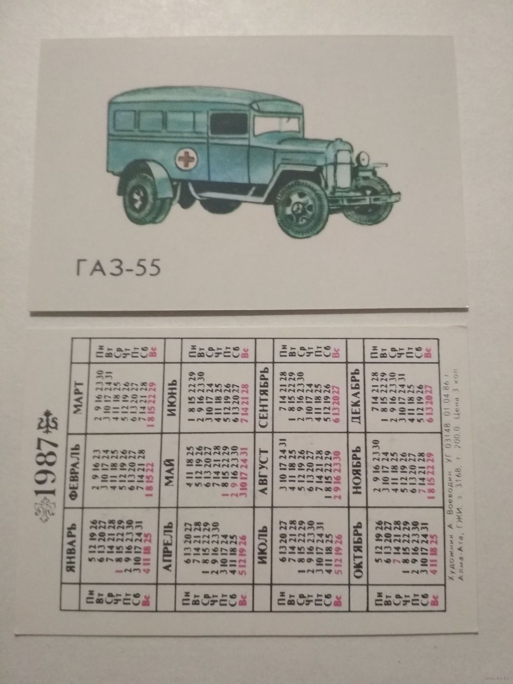 Карманный календарик. Автомобиль .1987 год