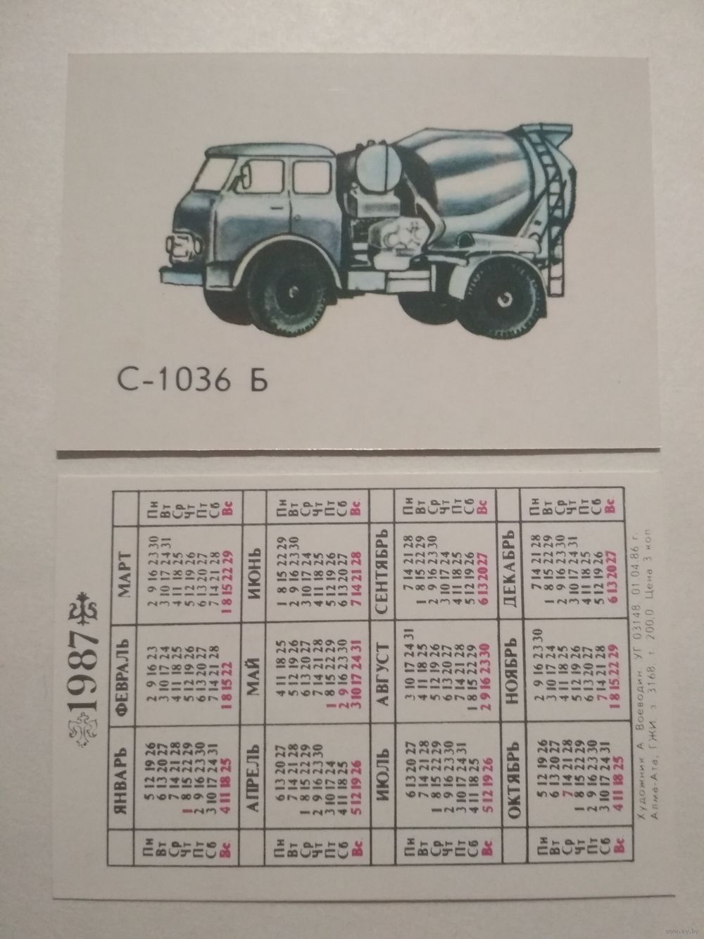 Карманный календарик. Автомобиль .1987 год