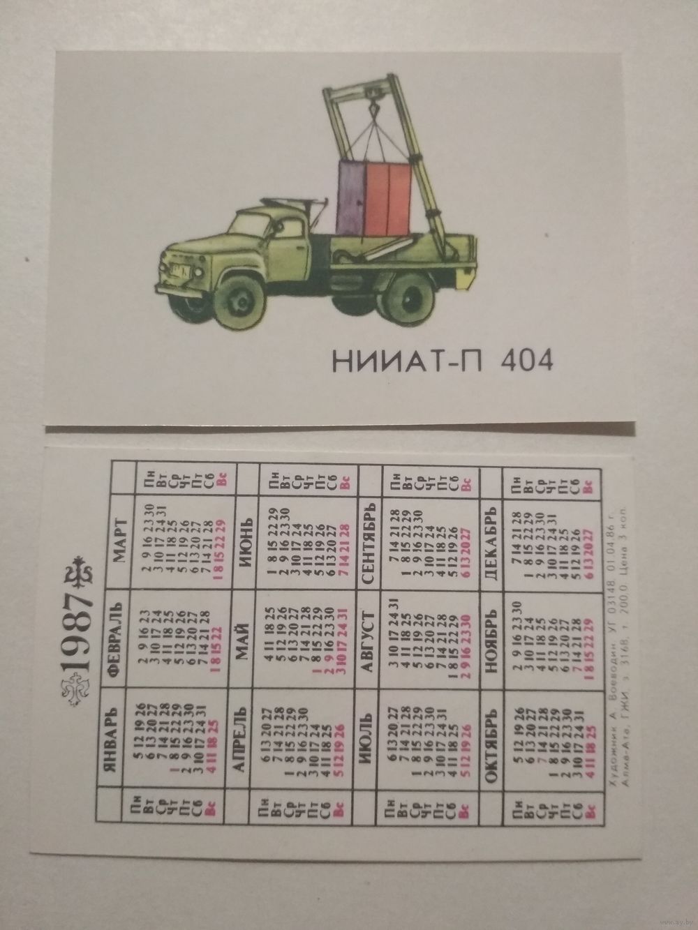 Карманный календарик. Автомобиль . 1987 год