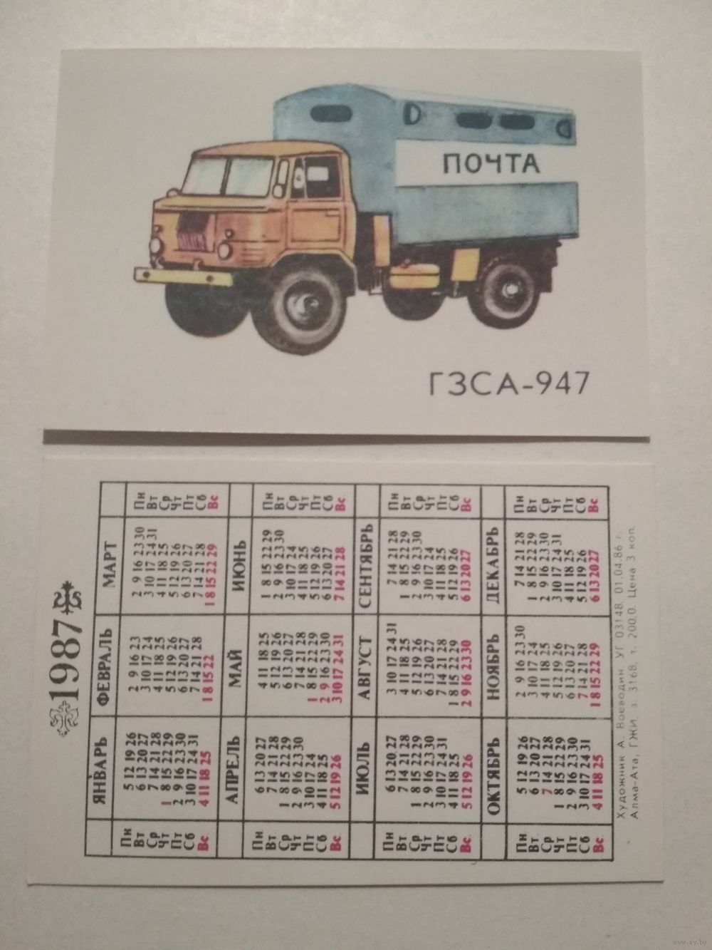 Карманный календарик. Автомобиль ГЗСА-947 .1987 год
