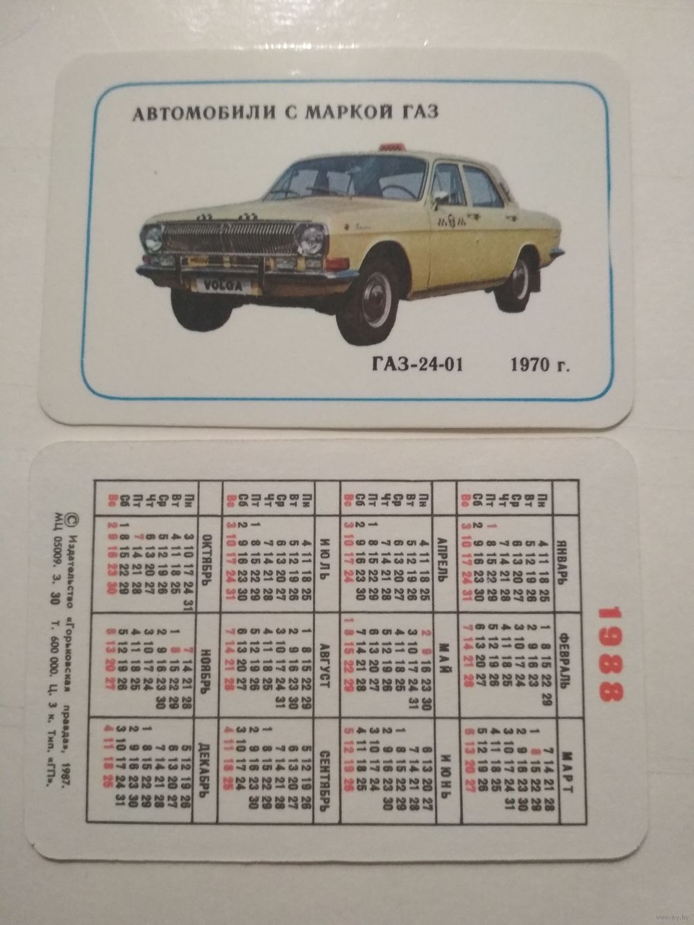 Карманный календарик. Автомобили с маркой ГАЗ. 1988 год