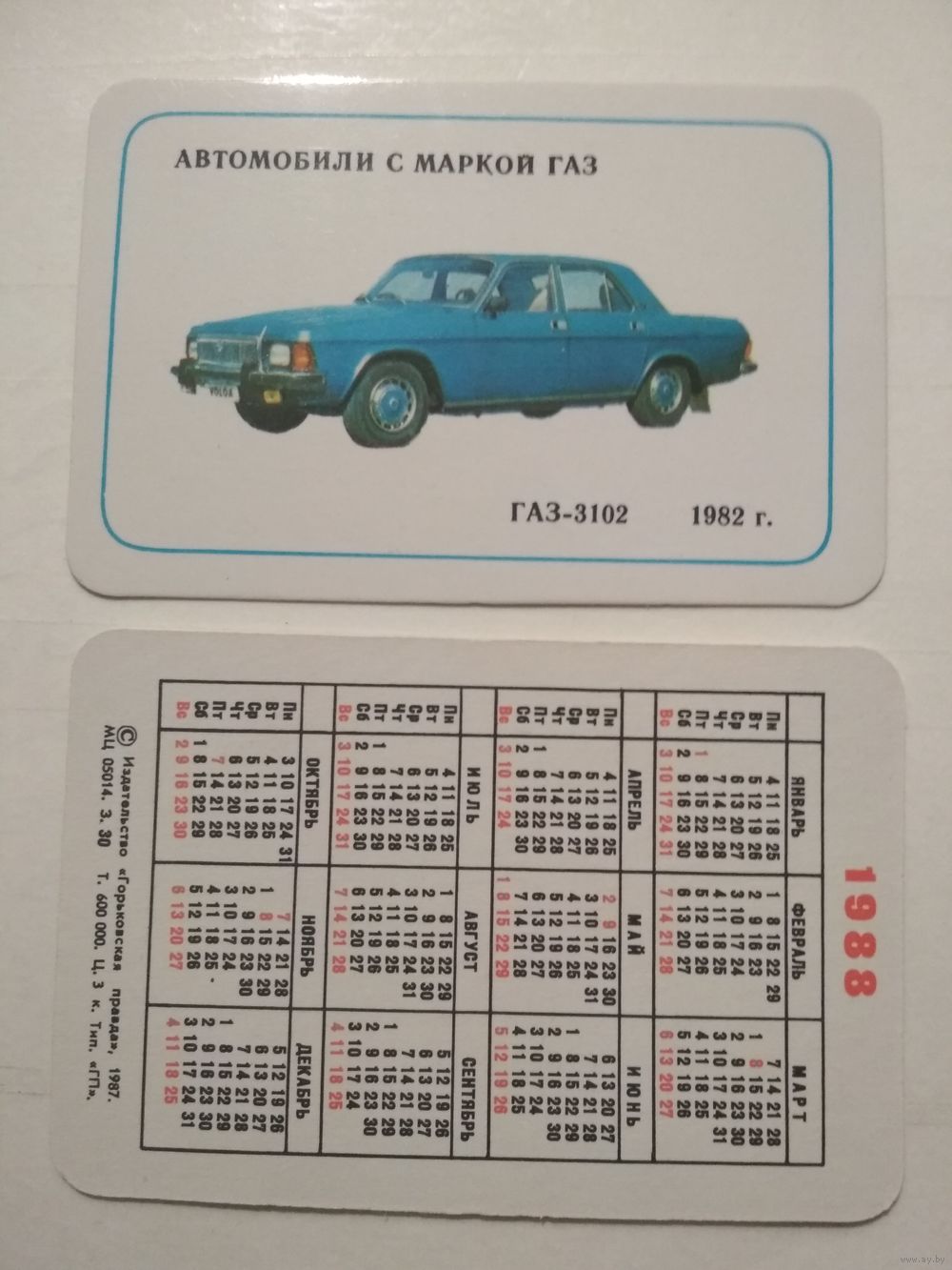 Карманный календарик. Автомобили с маркой ГАЗ. 1988 год