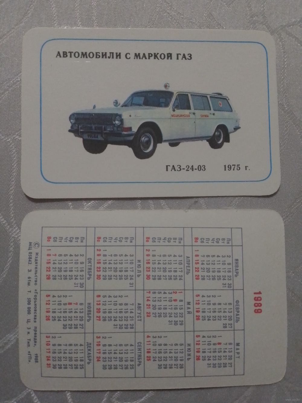 Карманный календарик. Автомобили с маркой ГАЗ.1989 год(з.61 шт)