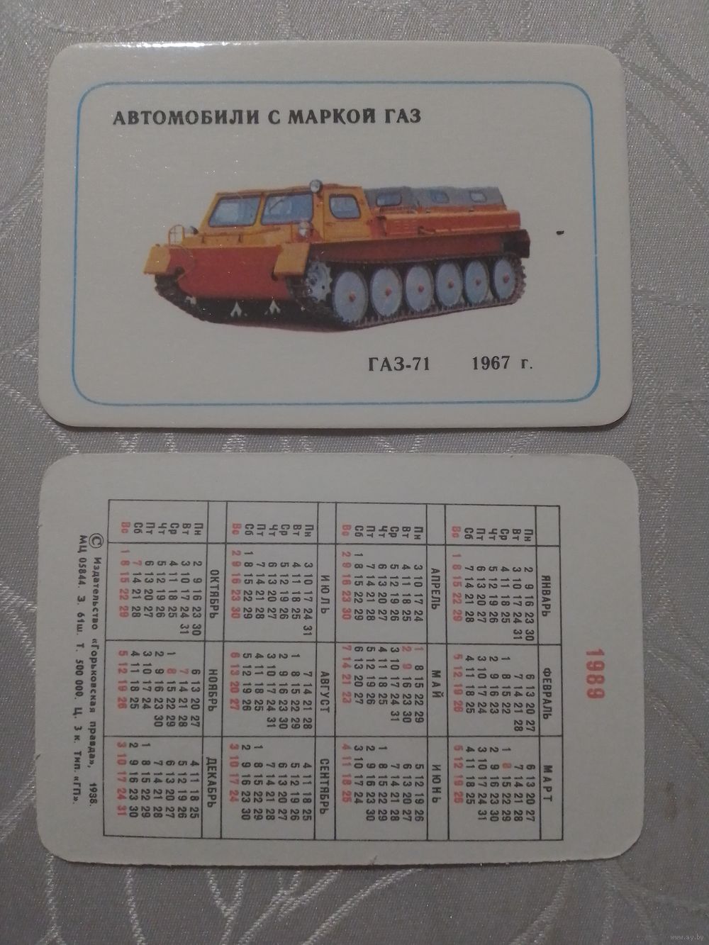 Карманный календарик. Автомобили с маркой ГАЗ.1989 год(з.61 шт)