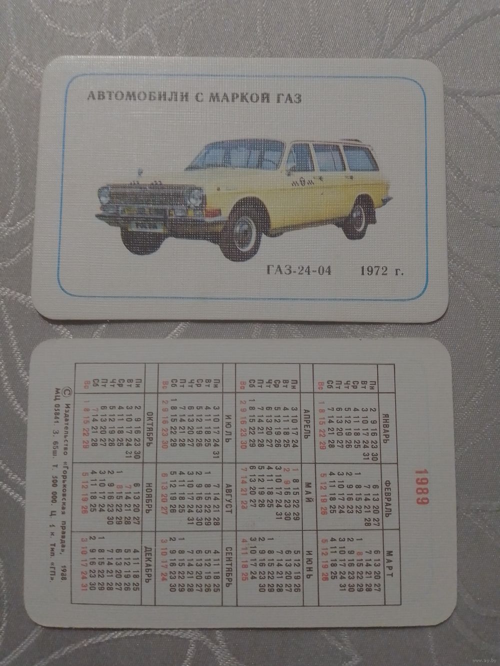 Карманный календарик. Автомобили с маркой ГАЗ.1989 год(з.65 шт)