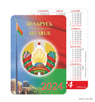 Карманный календарик. Беларусь. Герб. 2024 год