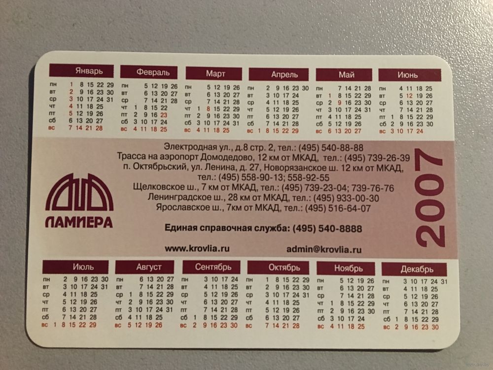 Карманный календарик. Центр кровли. 2007 год
